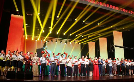 花开盛世迎华诞,霍医儿女齐欢颜。2019年是新中国成立70周年,也是霍山县医院建院70周年,为热烈庆祝祖国华诞,展现霍山县医院70年的发展历程和奋斗诗篇。9月20日晚,霍山县医院医共体集团与安徽迎驾集团联合举办“我与共和国同岁”大型文艺晚会。