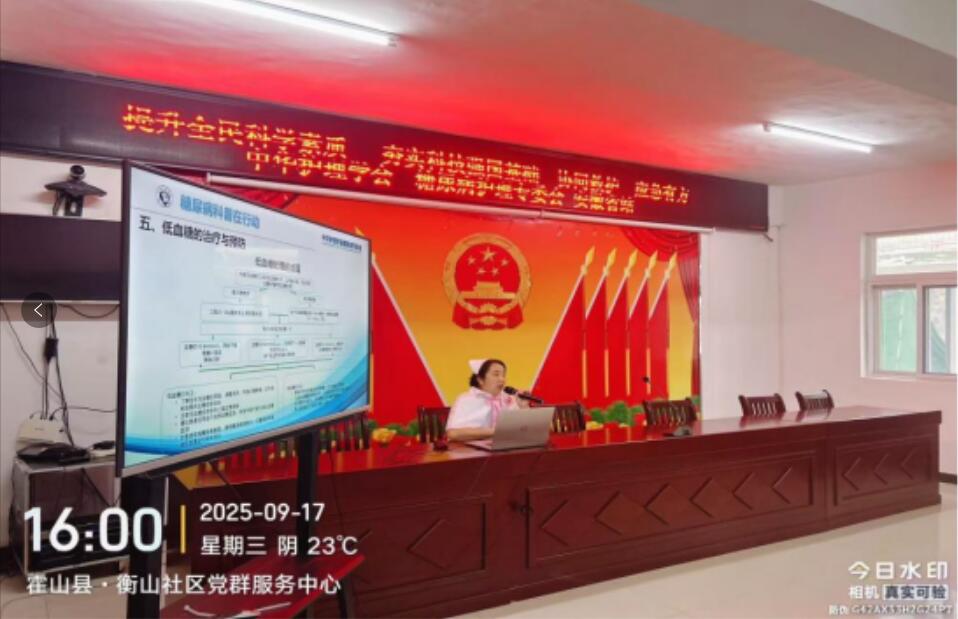 糖尿病防治是居民关注的重点健康话题。活动中,糖尿病专科护士潘萍结合图文并茂的课件,用通俗的语言细致讲解了糖尿病的发病原因、对身体的潜在危害,以及如何通过科学运动、合理饮食预防糖尿病的实用方法。针对居民提出的 “日常饮食如何控糖”“运动强度怎么把握” 等问题,潘萍耐心逐一解答,将专业的健康知识转化为居民能听懂、用得上的生活指南,有效提升了大家的糖尿病防治意识和自我保健能力。
