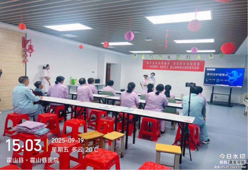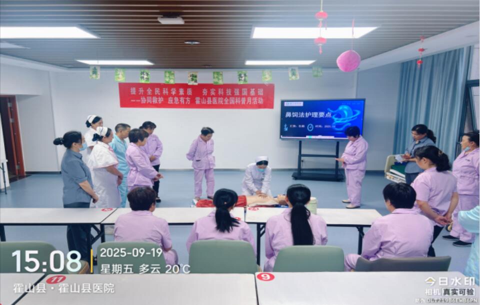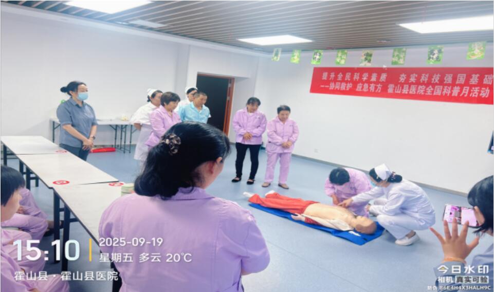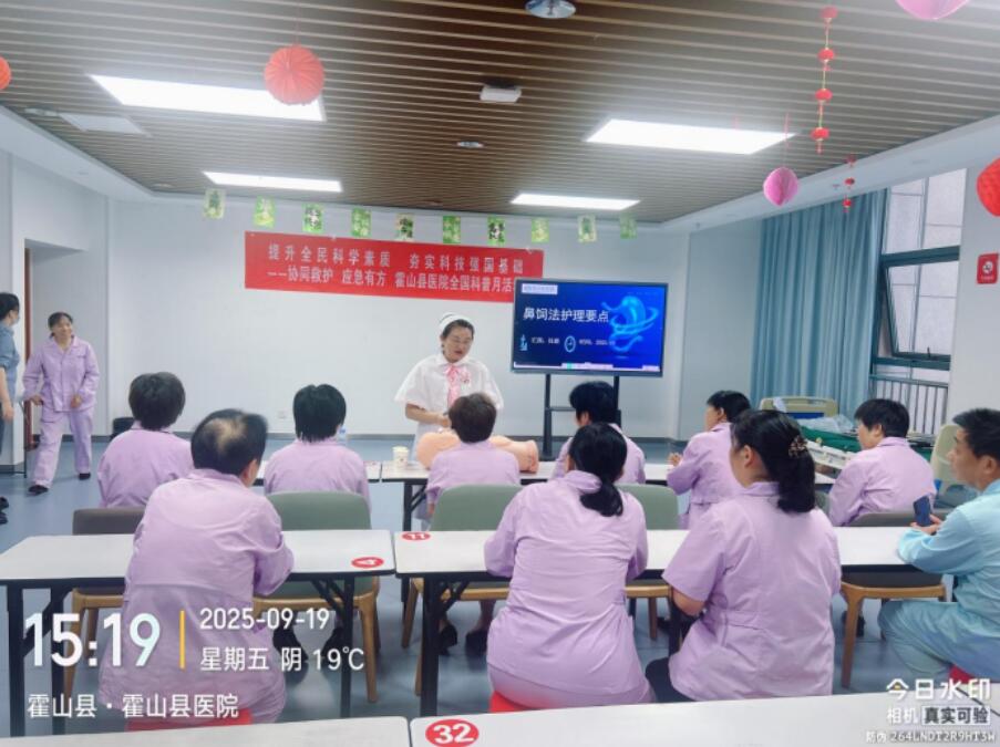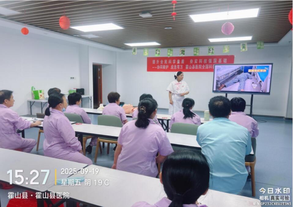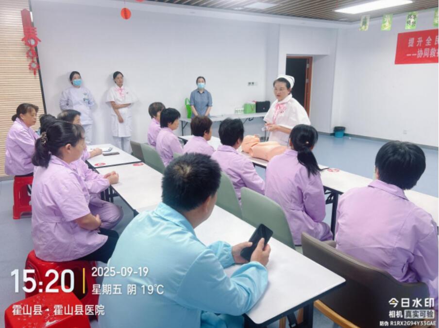 9月19日下午,一场以“守护生命,‘救’在身边”为主题的健康急救科普活动在霍山县医院医养中心成功举办。本次活动由霍山县医院护理部策划组织,旨在向后勤人员普及专业医疗护理知识,提升他们在突发情况下的自救与互救能力。活动聚焦日常生活中常见的安全风险,内容涵盖心肺复苏(CPR)、海姆立克急救法、鼻饲操作及跌倒坠床预防四大实用主题。