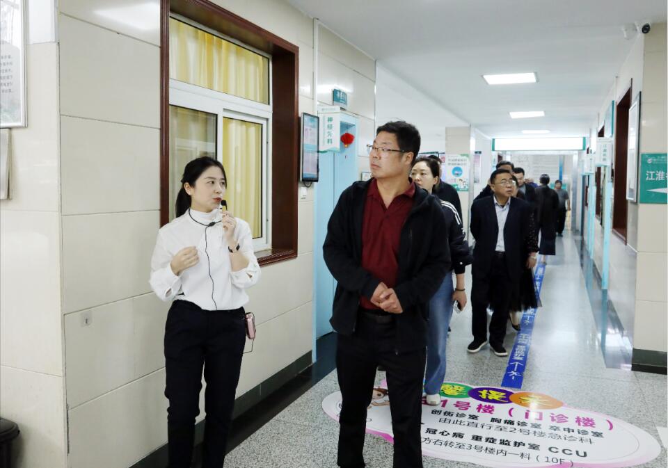 调研组一行先后参观了我院智慧门诊、博士工作站、江淮名医工作室、医学影像中心、医养中心及中心药库,通过实地察看、座谈交流等方式,详细了解我院在医共体组织架构搭建、资源整合共享、分级诊疗落实、人才下沉帮扶等方面的具体做法。