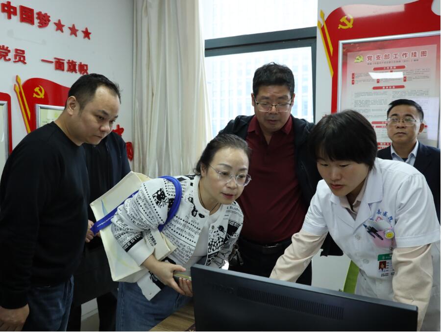 在药品管理科,调研组观看了工作人员对前置审方系统的应用演示。
