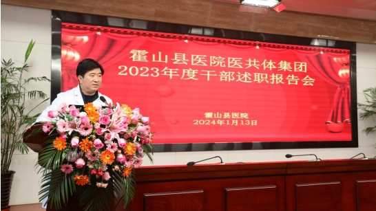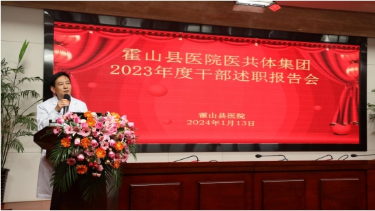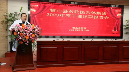 为稳步推进集团全面发展,切实提升干部服务意识、责任意识和大局意识,进一步提升管理效能,1月13日,霍医集团召开了2023年度干部述职报告会,霍山县医共体总院院长潘家东,霍山县医院医共体集团领导班子成员,各分院执行院长,职能部门负责人,临床医技科室科主任、护士长共100余人参加了会议。