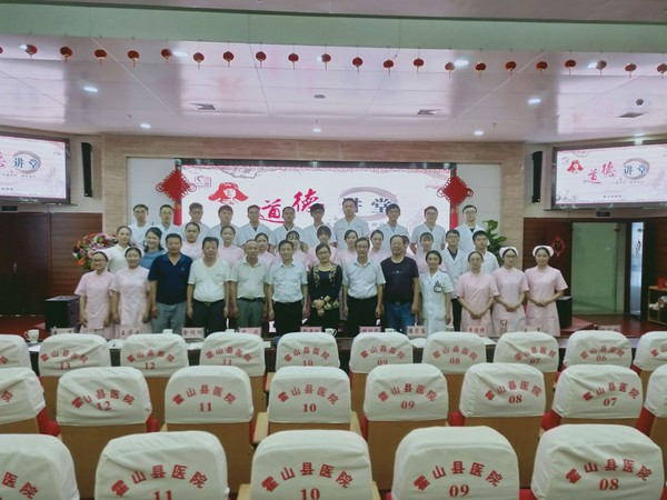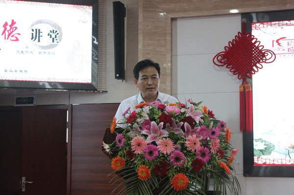 为大力培育和践行社会主义核心价值观,进一步推进我院精神文明建设及人文关怀示范医院创建工作的深入开展,引导我院职工积极投身道德实践活动,不断提升广大干部职工的道德修养和文明素质, 9月19日下午,我院以“大医精诚 与德同行”为主题的道德讲堂活动在内科医技楼十六楼多功能会议室隆重举办。县委常委、宣传部长张润之,县卫计委主任彭宗怀,县文明办副主任黎斌应邀指导。县医院院长潘家东作精彩致辞。