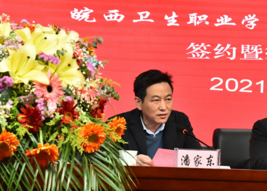 夏跃武在讲话中简要介绍了皖西卫生职业学院发展概况,对校院“牵手”表示祝贺。他希望,今后双方要各扬所长,各取所需,加强合作,互通有无;要有文本,但不局于文本;要有内容,但不止于挂牌;要建机制,专人管,实现理论教学和临床实践的有机结合,使教书育人和治病救人顺畅衔接;要有效果,让医生进课堂和教师进病房更加便捷,切实为卫生健康事业高质量发展提供人才保障。