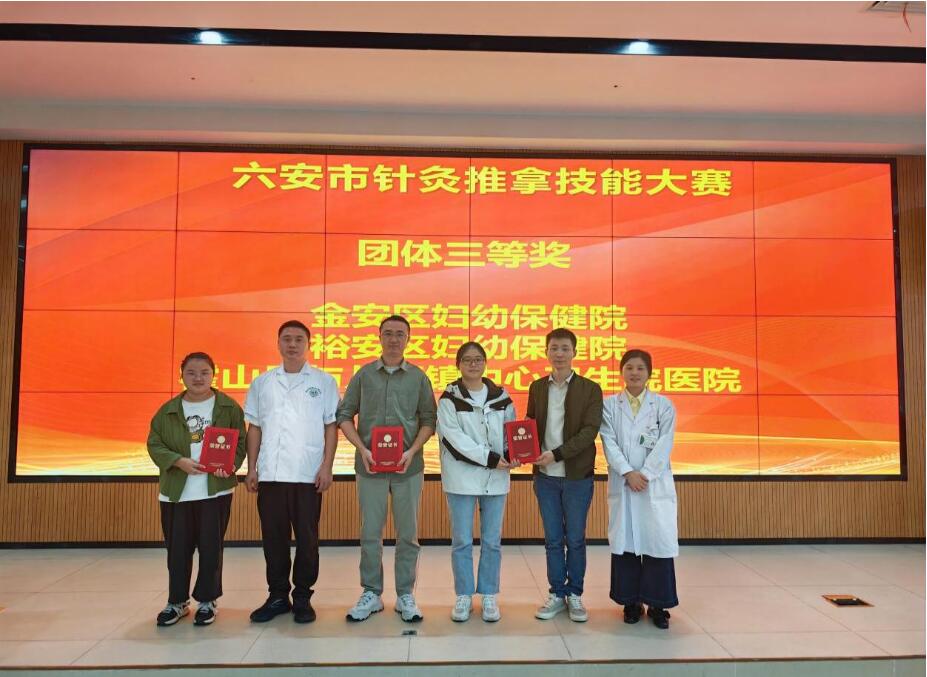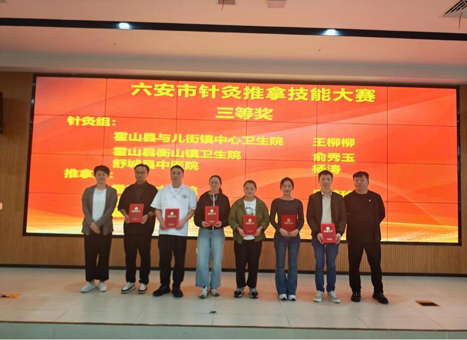 10月11日,在六安市卫健委与市总工会联合主办,六安市中医院承办的全市针灸推拿技能大赛中,我院中医康复科王柳柳、孙忠凭借扎实的中医理论功底、精湛的临床操作技艺及稳定的临场应变能力,在众多参赛队伍中脱颖而出,荣获“团体三等奖”、“针灸组个人三等奖”、“推拿组个人三等奖”多项荣誉。