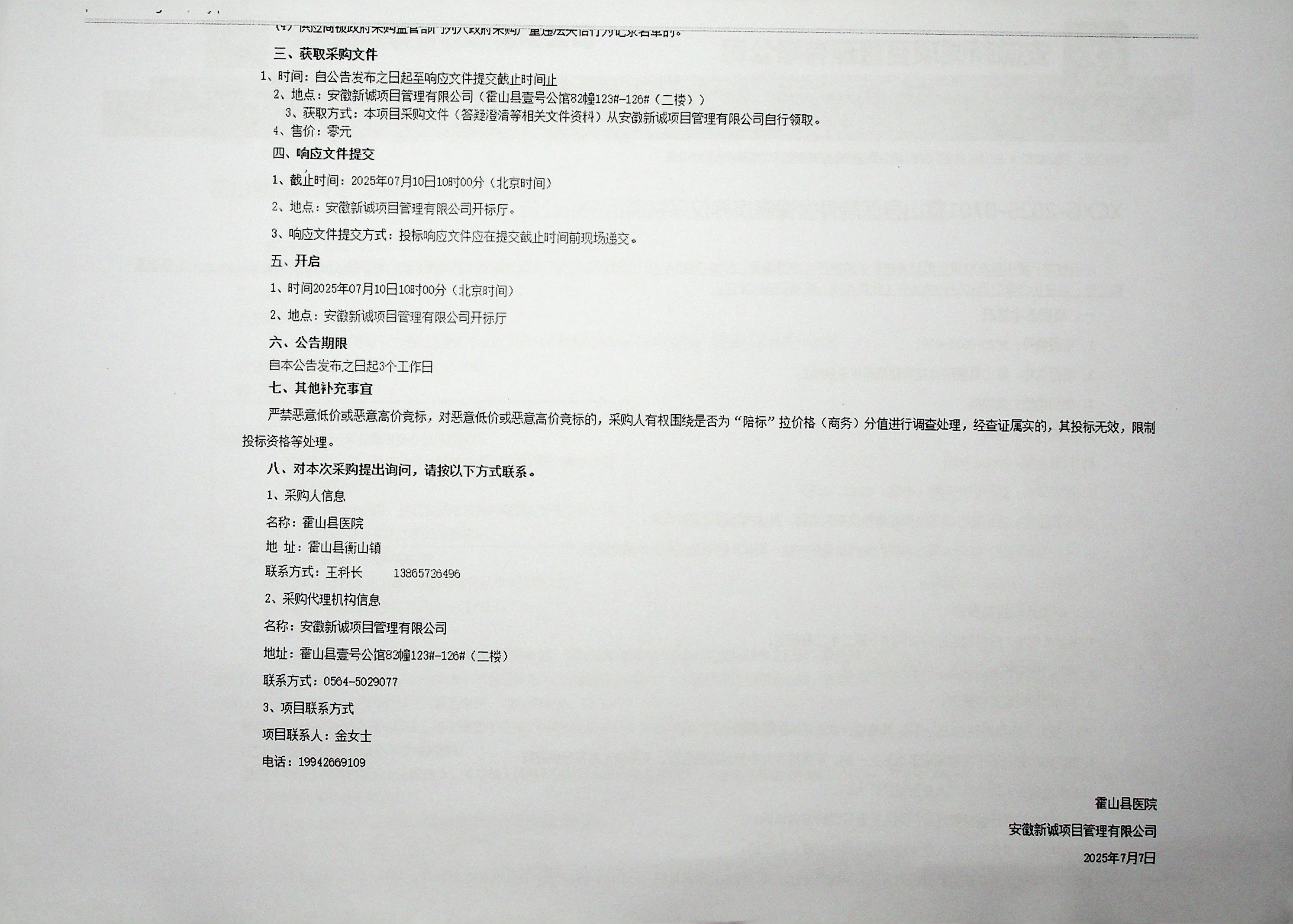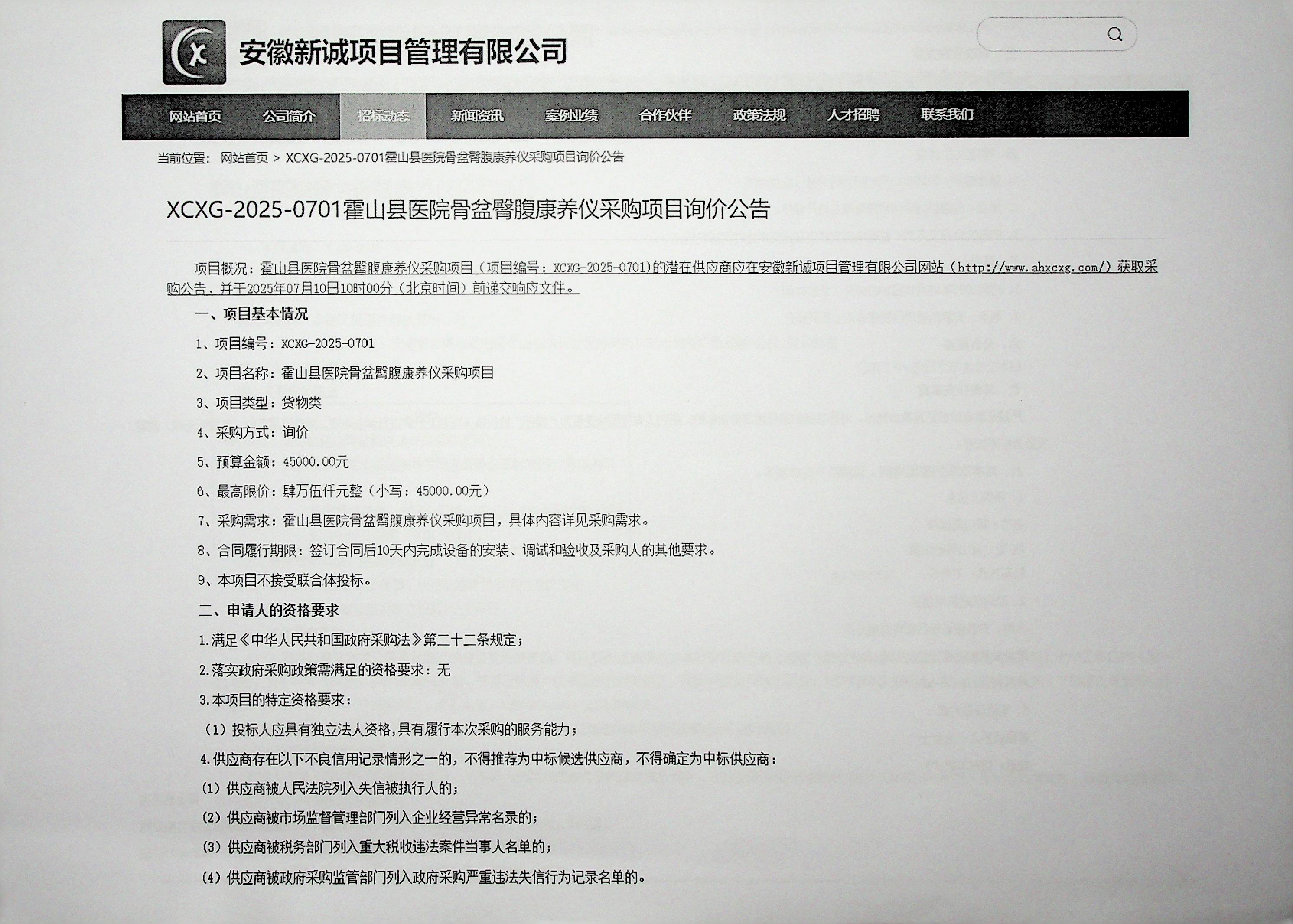 霍山县医院骨盆臀腹康养仪采购项目询价公告