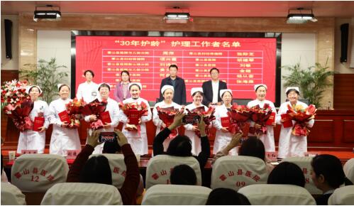 会上,霍山县卫健委医政股负责人张金永宣读了学会表彰文件,并对2022年至2023年度全县20名优秀护士和护龄达到30年的护理工作者进行了表彰颁奖,优秀护士代表万小竹发表获奖感言。