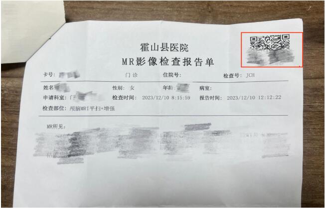 2.使用微信扫描纸质报告左上角的二维码就可以查看胶片。