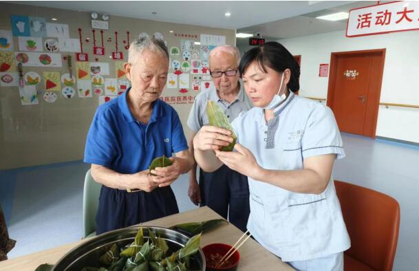 淡淡棕叶香,浓浓世间情,根根丝线连,切切情意牵。时值端午,医养中心精心为在住的老人举行了“情浓五月天,欢乐度端午”主题活动。在医养中心服务大厅,工作人员早早把准备好的粽子食材、粽叶、麻绳等必备材料摆放整齐,入住的长者和工作人员们一起包棕子、聊家常,在欢乐祥和中享受着医养中心这个大家庭浓浓的温情,尊老爱老的优良美德和节日传统文化相得益彰,医养结合心服务,让健康养老更有温度 。