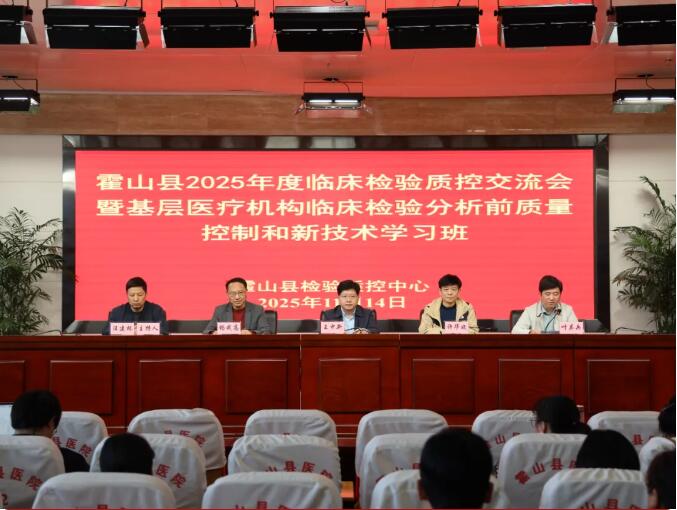 为切实提升我县基层医疗机构临床检验分析前的质量管理水平,加强临床检验新技术的规范应用和推广,进一步推进临床检查检验结果互认工作的深入开展,11月14日至15日,“霍山县临床检验质控交流会暨基层医院临床检验分析前质量控制及新技术应用能力提升学习班”在我院内科医技楼16楼会议室成功举办,六安市检验质控中心主任许华斌,县计生协会秘书长杨成高,县医院党委副书记、副院长叶其兵出席了开班仪式并发表讲话,来自县乡两级医疗机构的检验和医护工作人员共计90余人参加了此次会议,会议由医务科科长汪建林主持。