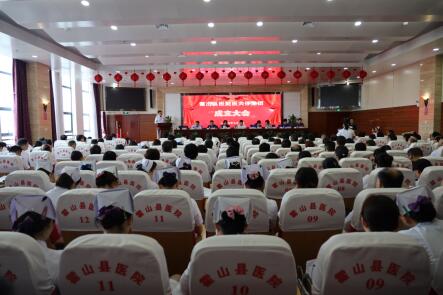 7月1日,霍山县医院医共体集团成立大会暨揭牌仪式在县医院内科医技综合楼隆重举行。县委副书记、县长赵珞,县委常委、宣传部长张润之,县人大常委会副主任李燕,副县长朱静,县政协副主席叶登江,县政府办主任余龙松,霍山县医院医共体集团建设工作指导组全体成员,集团分院所在乡镇分管领导,县卫健委领导,集团总院董事会成员、中层干部,集团分院领导班子成员,集团总院全体党员参加会议。