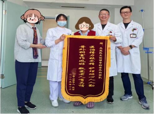 这不,就在最近,普外科便收到一位来自近90岁高龄老人及其家属送来的锦旗,感谢普外科医务人员为老人家解除了病痛的困扰。老人家因为大便习惯有所改变到我院内镜中心进行肠镜检查,提示为结肠良性肿瘤,因为肿瘤较大影响了奶奶的正常生活,在听了医生的详细讲解后,奶奶和家人们权衡再三决定手术治疗。考虑到奶奶年岁较大,手术风险系数高,霍山县医共体总院院长潘家东亲自会诊,与普外科团队认真讨论为她量身制定了治疗方案,让奶奶和家人的担心又少了一分。手术在外请专家和普外科医生的全力配合下顺利完成,术后病房护士给予细致的护理和耐心疏导,第二天奶奶便可以下床活动了,在医护人员的精心治疗护理下奶奶很快便痊愈出院。老人家的肿瘤虽证实为良性,但如果处理不及时,随着年纪的增加,癌变的可能也会增加,此次手术不仅解决了奶奶的后顾之忧,而且手术能如此顺利且恢复的这么快,奶奶和家人们都十分开心。